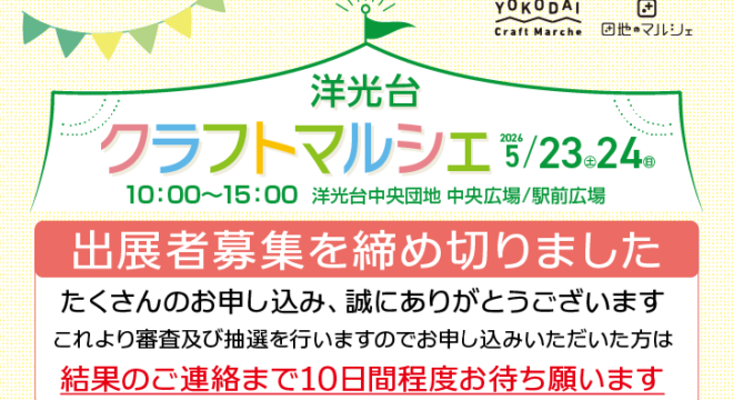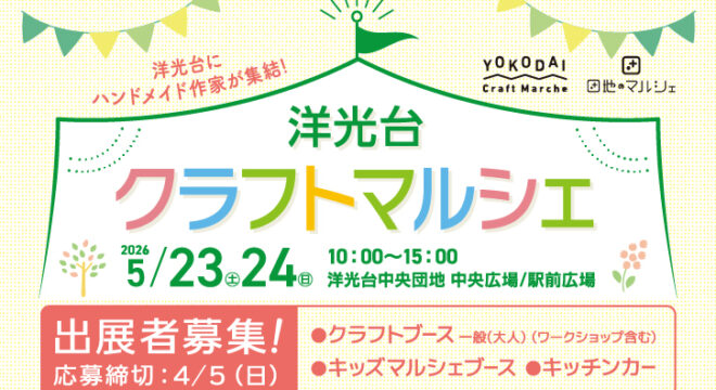 洋光台中央広場にクリエイターたちが大集合するハンドメイドの祭典「洋光台クラフトマルシェ」詳しくはこちらをご覧ください。