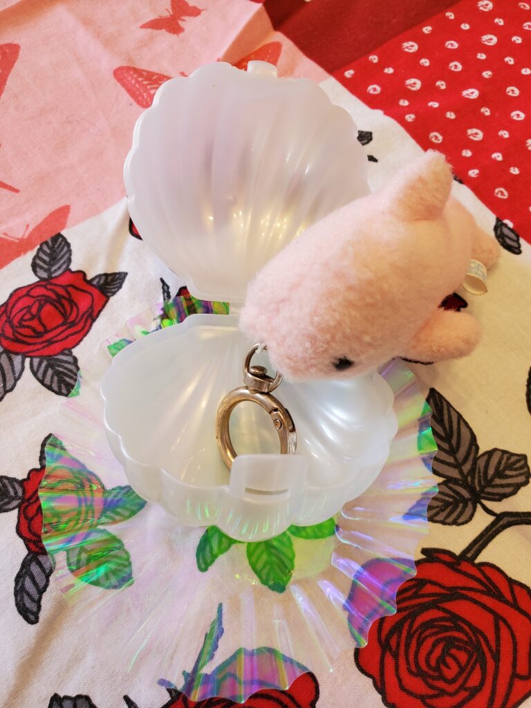 色とりどりのキラキラしたクラゲやお守りのキーホルダーや、デコホイップクリームを使ったヘアピン、ヘアゴムやネックレス、イヤリングにピアスなどがあり、他にもプリンや花などのマグネットもあります!3個以上お買い上げの人にはパワーストーン1個プレゼントします!(商品6個でパワーストーン2個)natural shell