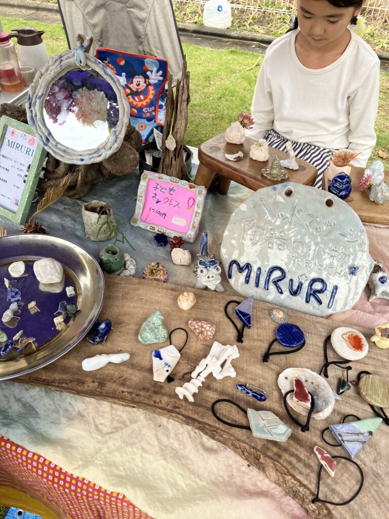 小学生5年生と3年生の姉妹で担当します。商品は姉妹自分で作ったモザイクで装飾した花瓶やコースターなど。スペースがあれば、同時にそれのワークショップも開く予定です。