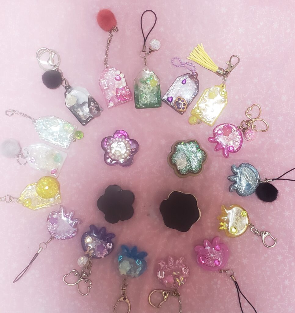 デコホイップケースやキラキラストラップ、レジンシェイカーは推し活にぴったり!樹脂粘土で作るミニチュアフードは思わず食べたくなっちゃうかも?!推し活大好き姉妹のお店にぜひ遊びにきてね☆