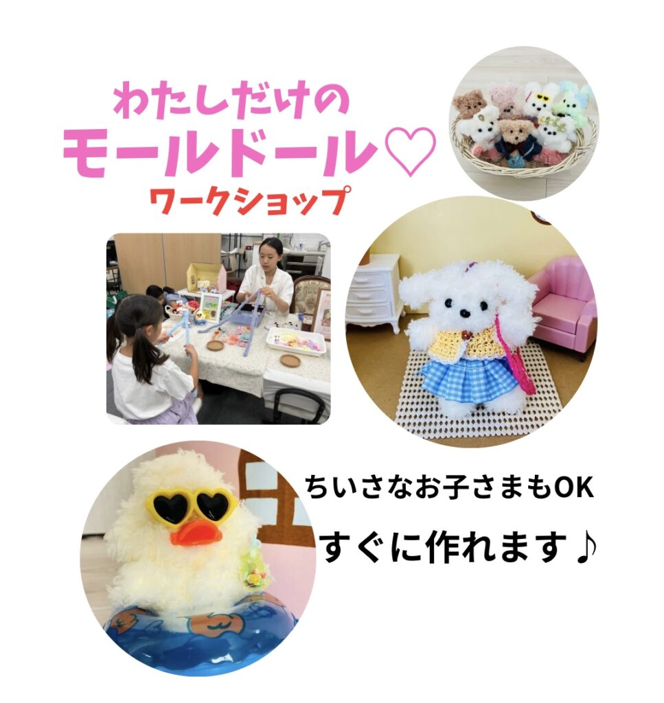 自分だけのお気に入りのモールドールが作れます♡小3、小6のお姉さんが丁寧に教えます。安心してご参加ください。かわいいオリジナルパーツもご用意します。インスタは母のページですが、彩衣、心咲の活動も載っています。