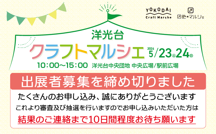 「洋光台クラフトマルシェ」の出展者の募集を4月5日(日)で締め切らせていただきました。